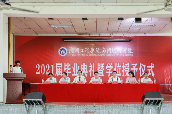 6月23日15:10,伟德bv1946官网应用技术学院2021届毕业生毕业典礼暨学位授予仪式在南校区一教四楼活动中心举行。校长易兵,副校长魏克湘,应用技术学院院长李光中,党委书记黎娅,副院长梁开健、胡武平,党委副书记陶连洲出席毕业典礼。典礼由魏克湘主持。