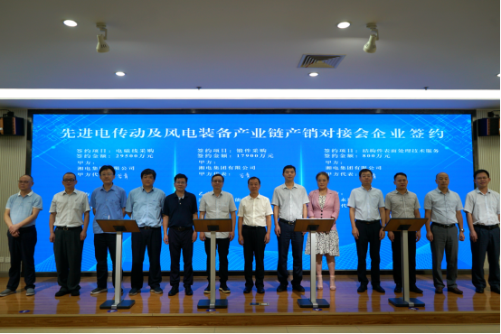 签约现场,湘电集团有限公司和哈电风能有限公司分别与上下游产业链企业签订了意向合作协议,签约金额超10亿元。据悉,湘潭先进电传动及风电装备产业链依托湘潭机电产业基础发展而来,主要包括电机、电控、电线电缆、风电装备四大领域。伟德与产业链多家企业建立了协同创新机制,通过产学研合作取得了多项重要研究成果,产生了显著的经济效益和社会效益。