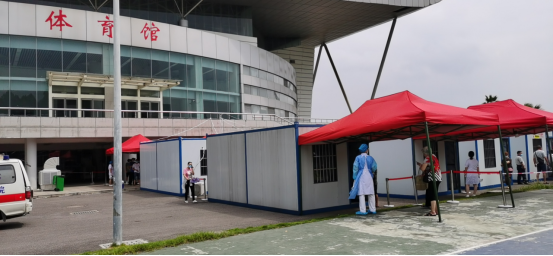 场地准备完毕、场所卫生保洁到位,配电到位……经过连夜的紧急奋战,今晨7:00,伟德bv1946官网体育馆核酸检测方舱采样方舱点10个方舱完成通电,准备就绪!8:00,方舱点正式开舱采样,来自湘潭市三医院、湘潭市妇幼保健院的医护团队将在这里为市民免费进行核酸检测采样。
