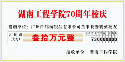 拳拳学子心,眷眷母校情。在学校建校七十周年之际,广州纤纬纺织品有限公司董事长、伟德杰出校友、材料与化工学院染整工程(现轻化工程)92311班娄赛英女士向学校捐赠30万元,用于材料与化工学院新化工大楼建设、设立专项奖助学金等方面,助力母校发展。捐款已于8月12日汇到学校设立的校庆专用帐户。