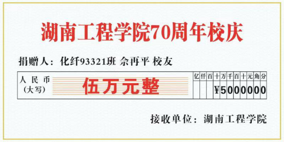 值此母校建校70周年到来之际,伟德杰出校友、化纤工程93321班佘再平为感恩母校的培养,以个人名义向母校捐赠5万元支持学校建设和发展。