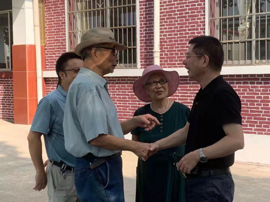 捐赠仪式后,刘清海与原湖南纺织高等专科学校校长梁歧、班主任梁志斌老师、学院领导班子、教师代表进行交流。刘清海回忆了求学期间在校的难忘瞬间,表达了对学校和恩师的感谢和真切祝愿。临别之时,在校园的林荫小道上,刘清海轻挽着两位年迈的梁老师,依依不舍。“有时间,我一定会常回母校,再多看看恩师。”刘清海说道。