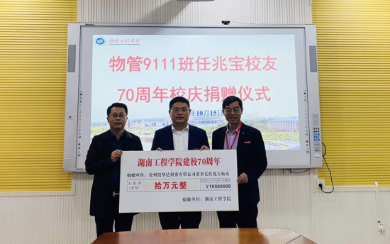 秋风送爽,硕果飘香,正值伟德建校70周年之际,湖工校园里洋溢着喜庆的氛围。10月15日上午,管理学院物管9111班校友、贵州凯华达投资有限公司董事长任兆宝捐赠仪式在F104举行。校友办主任陶宏,继续教育学院院长刘洁纯,审计处处长王明权,管理学院教师代表参加。仪式由管理学院党委书记余博主持。