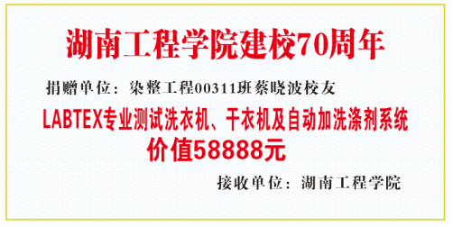 值此母校建校七十周年之际,怀着回报母校、助力母校发展的拳拳之心,材料与化工学院染整工程00311班校友蔡晓波向母校材料与化工学院捐赠一批实验物资,价值58888元。