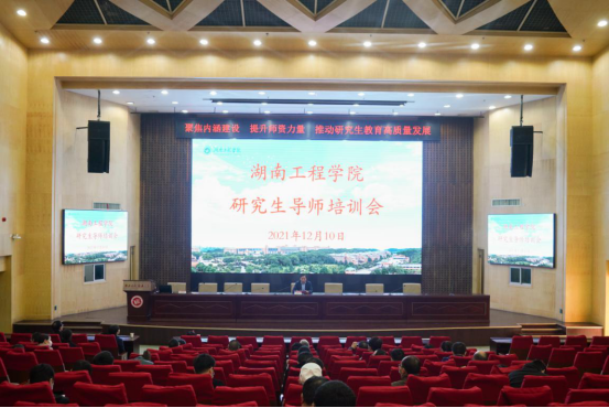 中南大学发展规划与学科建设处处长、博士生导师武明花教授,湖南科技大学研究生院原院长、博士生导师高文华教授,湘潭大学研究生院副院长、博士生导师穆远征教授应邀作培训报告。校党委委员、副校长罗毅平、魏克湘出席,各学院分管研究生工作副院长、全体研究生导师、研究生秘书、研究生工作处全体人员等共180余人参会。培训会由魏克湘主持。