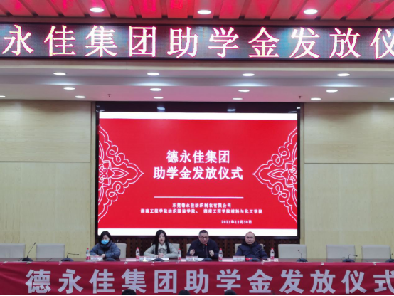 12月30日,伟德bv1946官网德永佳集团(东莞)有限公司助学金颁发仪式在二报告厅举行,校友办、材料与化工学院、纺织服装学院相关负责人出席,受资助学生以及纺织工程专业部分学生参加仪式。仪式由纺织服装学院党总支副书记罗荃主持。