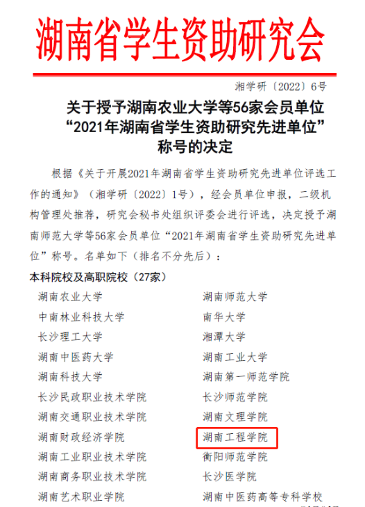 喜讯传来,伟德首次荣获“湖南省学生资助研究先进单位”荣誉称号;学生工作处副处长唐星星课题《资助育人视阈下高校家庭经济困难学生获得感提升路径研究与实践》获得湖南省学生资助研究“2021年度优秀科研成果”。