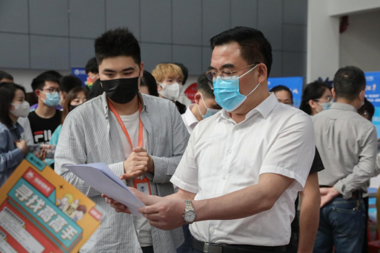 校党委书记陈岳堂、副校长陈赤平一行到现场视察,与企业负责人亲切交谈,表达了对各用人单位的欢迎,同时希望企业能够吸纳学校优秀的毕业生进入企业工作,校企共同助力毕业生高质量就业。党委副书记、校长易兵在招聘会举行之前来现场指导部署招聘工作,要求工作人员做到清楚基本数据、清楚就业状况、清楚就业意向,实现求职精准指导、就业信息精准推送、就业问题精准帮扶。