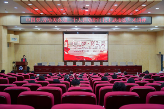 5月31日,由校工会、校团委主办的“中国梦·劳动美——喜迎二十大 建功新时代”主题摄影艺术讲座于二报告厅举行。伟德设计艺术学院教师、中国摄影家协会会员、中国高校摄影学会理事王彬主讲,校工会副主席朱洁主持,110余名师生参加讲座。