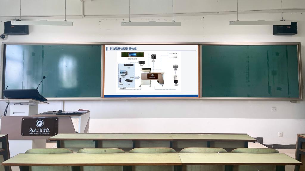 调研中,网络信息与现代教育技术中心工作人员介绍了多功能基础型智慧教室的理念与特色,多功能基础型智慧教室是在传统教室的布局上进行了基础的智能化改造,旨在打造一个“高清晰、深体验、强交互”的教室环境。其中增加了98寸4K类纸大屏,具有显示面积大、高清晰的特点,优化了课堂教学的内容呈现;兼容传统教学需求,绿板书写面积由六个平方增加到九个平方,有利于原理讲解、公式推导,展示清晰;教室环境绿色健康,采用环保的智能灯光,见光不见灯,大屏无蓝光、防眩光、无频闪,有利于保护学生视力健康。教室设备采用人脸识别开机,可以呼叫求助和无线投屏;最大特色是讲台的智能交互系统,可以直面学生进行触控操作和书写,增进师生交流和提高课堂效率。网络信息与现代教育技术中心负责人表示,多功能基础型智慧教室既延续传统模式教学又便于开展信息化教学,具有示范作用。