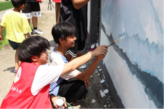 志愿者们结合当地风俗习惯和文化特色,绘画了系列以“美丽乡村”“社会主义核心价值观”“民族团结”等为主题的墙绘作品,将专业知识转化为实践能力,为美丽乡村增添一抹色彩。在墙绘绘制过程中,不少村民热情地与志愿者们交流,或是探讨绘画内容,或是驻足欣赏,更有许多小朋友,纷纷加入墙绘小分队中。