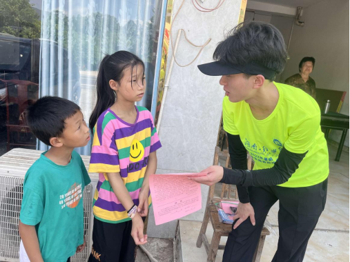 7月9日一早,顶着烈日,志愿者们相继出发前往各村庄,开展防溺水安全知识教育、防诈知识宣传、远离“毒蘑菇”宣传教育、国家资助政策宣传等教育活动。志愿者们同村民详细介绍了国家资助政策,将国家对学生的“奖、贷、助、补、减和新生绿色通道”的资助政策送到村民面前,让他们切切实实地感受到国家资助政策的好,帮助更多家长了解国家资助政策,助力困难家庭学子圆梦大学。很多村民都表示第一次了解到国家资助政策,并感谢志愿者们带来了这些优惠政策消息。