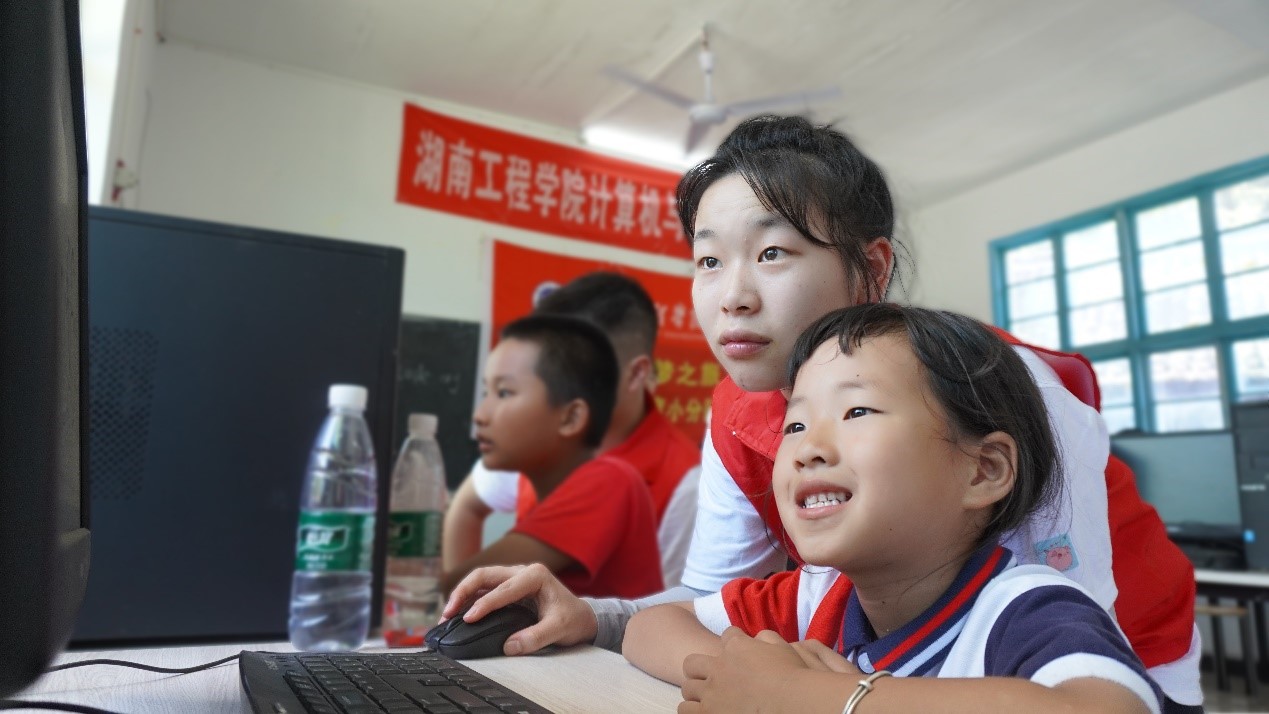实践团通过走访调研,了解当地留守儿童心理状态,开展心理关爱服务提高儿童心理健康素养,实践团借助机房对当地儿童进行相关的信息化教学,提高儿童的文化修养,实现乡村与高校“同频共振”。“知识永远是他们改变命运的第一力量,让外界更多的关注成为他们的第二力量”,实践团成员表示。除此之外,实践团还开设了相应课程,让更多的儿童们学会使用电脑查资料并培养主动学习的意识。