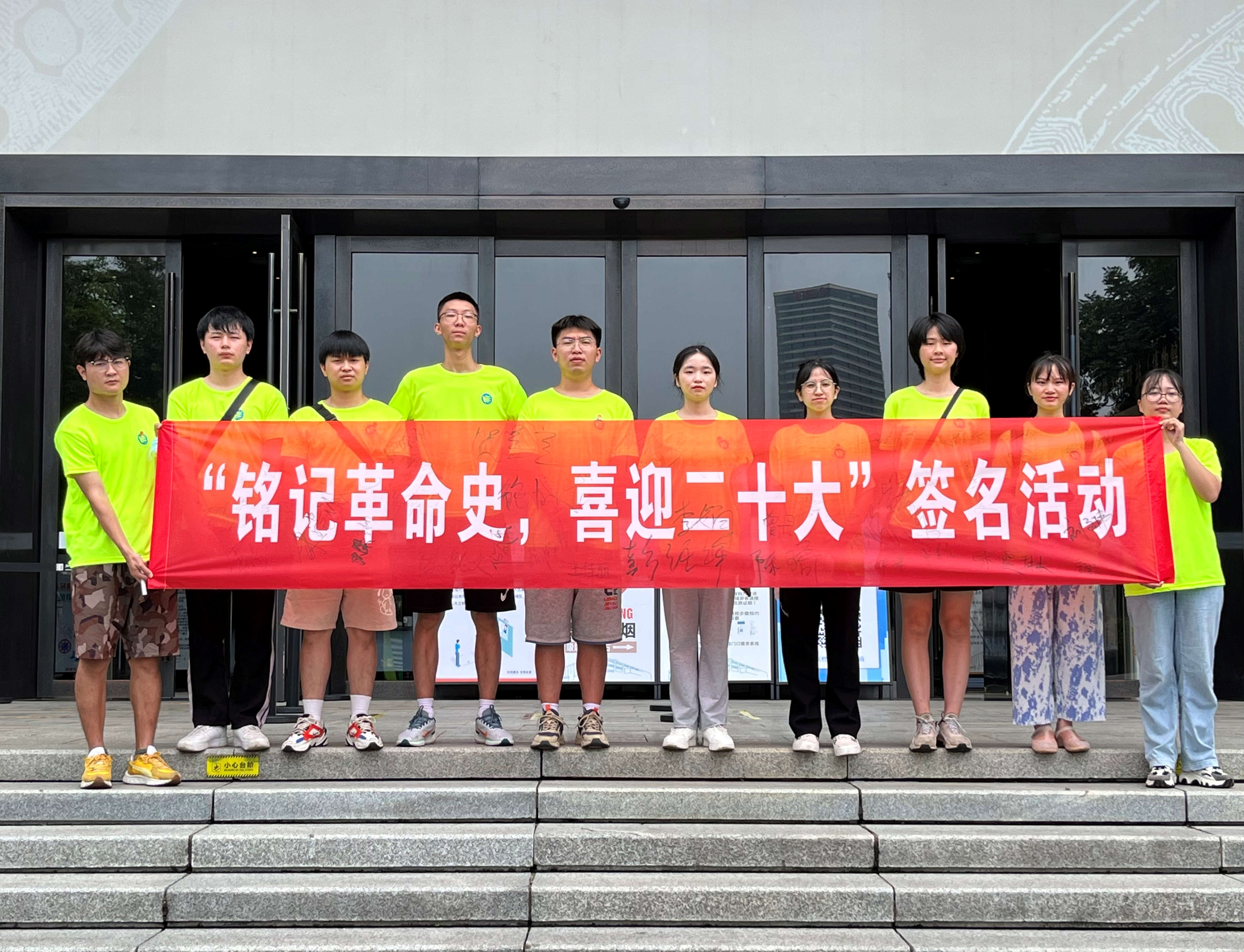 在烈士陵园中,实践团重温入团誓词、向烈士默哀借此表达对革命烈士的缅怀之情,学习先辈不畏牺牲的崇高精神。随后,实践团前往湘潭市党史博物馆,一起探寻党的发展足迹,感受党史中蕴含的精神力量,并在党史馆外开展了“铭记革命史,喜迎二十大”签名活动,实践团成员们和党史博物馆的参观者都郑重地在横幅上签下自己的名字。实践团成员陈凯文说:“学习党的历史,传承烈士遗志,是我们当代大学生的责任与义务。”