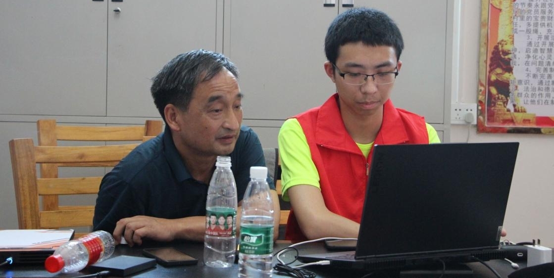 实践团成员与驻村帮扶队曾曙林队长共同探讨平台搭建事宜