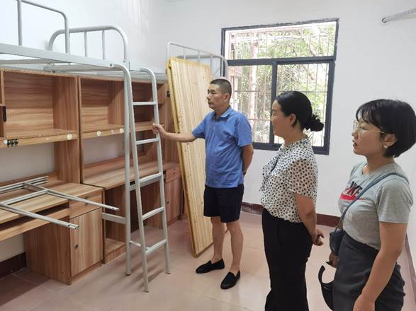 8月24日,校党委委员、副校长向前在资产管理处相关负责人的陪同下,到亲民学生公寓一至四栋、教工二栋督查窗户限位器、家具改造及空调安装等项目进展情况。