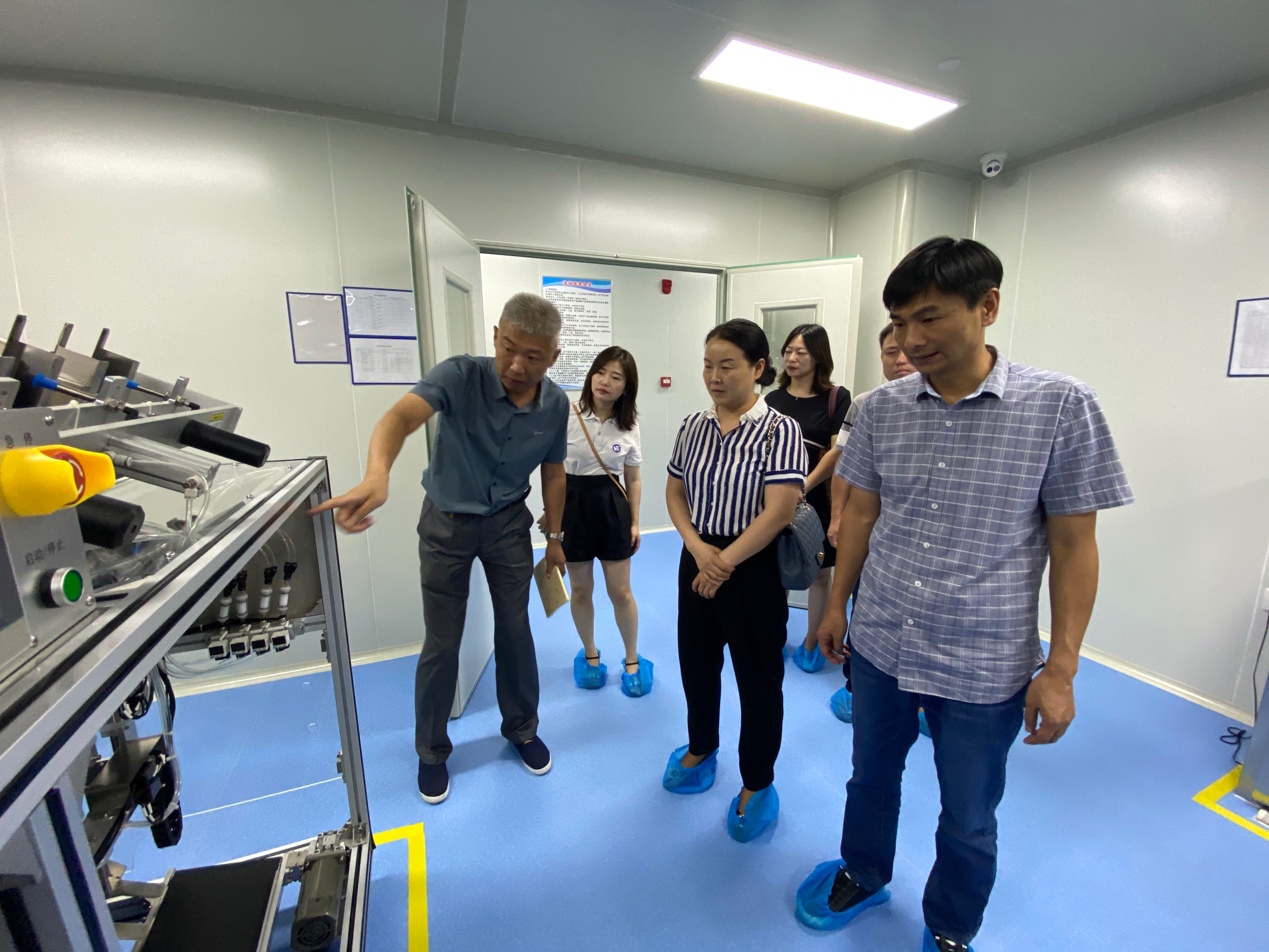 会后,在公司生产厂长张立新的带领下,向前一行参观了公司的千级无尘净化生产空间。