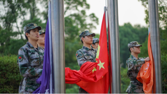 早上7时,英姿飒爽的国旗护卫队迈着铿锵有力的步伐,护卫鲜艳的五星红旗,正步走向升旗台。伴随着雄壮激昂的《义勇军进行曲》,国旗缓缓上升至旗杆顶端,高高飘扬在广场上空。全体师生注视着五星红旗冉冉升起,一同高唱国歌,五星红旗迎风飘扬,在晨光下光彩耀人。