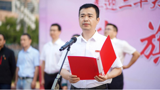 张小刚发表国旗下的讲话。他代表学校对2022级新同学们的到来表示最诚挚和最热烈的欢迎,并勉励全体新生求学期间完成两个任务:一是坚定理想信念,涵养崇高品德;二是练就过硬本领,培育卓越才华。他希望大家从入学开始就胸怀家国责任,坚定理想信念,锤炼品德修为,练就过硬本领,把自己的发展融入中华民族伟大复兴和构建人类命运共同体的伟大事业中。