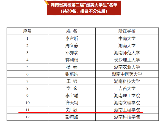 近日,湖南省高校第二届“最美大学生”结果公布,全省共推选出“最美大学生”20名,伟德机械工程学院材料成型及控制工程专业19级刘毅获此称号。