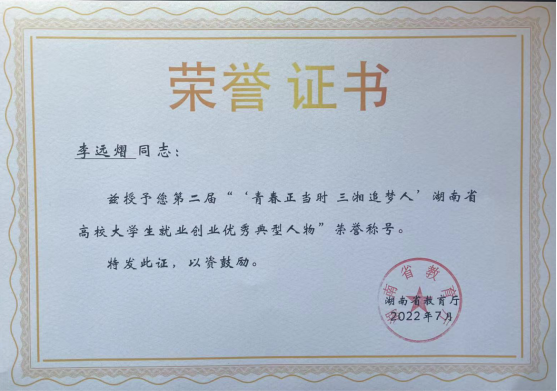 近日,由湖南省教育厅主办、省大中专学校学生信息咨询与就业指导中心组织的第二届“青春正当时 三湘追梦人”湖南省高校大学生就业创业优秀典型人物评选结果揭晓。伟德机械工程学院2018届机械设计制造及其自动化专业毕业生李远熠获此殊荣。