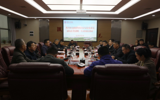 3月23日下午,湘潭市公安局党委委员、副局长贺剑鹏一行来校调研,党委委员、副校长张小刚接待陪同。