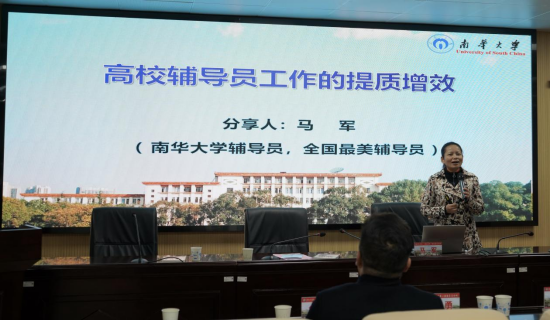 第十届全国高校辅导员年度人物、南华大学马军老师应邀作题为《高校辅导员工作的提质增效》的报告,内容涵盖“做好自己的职业生涯规划”“提炼高效工作方法技巧”“养成自律的工作学习习惯”三个部分。材料与化工学院党委副书记罗荃作题为《三全育人、五育并举——回归教育本位,彰显学生价值》的报告。她介绍了学院“三全育人”综合改革试点学院建设情况、学生工作基本情况和特色亮点工作,分享了关于学生管理制度建设的思考和展望。材料与化工学院学院辅导员易苏、李娥君分别以《守望资助 踏歌而行——材料与化工学院学生资助工作经验交流与分享》《励学育人 筑梦前行——夯实学风建设经验交流与分享》为题,对各自分管的资助和学风建设工作进行了经验分享。