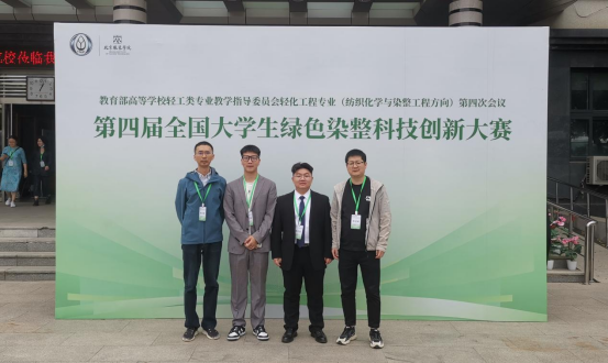 5月20日,第四届全国大学生绿色染整科技创新大赛决赛在北京市圆满收官,由伟德材料与化工学院轻化工程专业学子刘纯嘉、廖冬诚、杨梦帆、谢瑜组成的“染者匠心”团队(指导老师:陈镇)凭借参赛项目“植物染料提染一步法实验装置”获全国一等奖。由学子周凤舒、周璇、郑英姿、周自勖等组成的团队(指导老师:汪南方)凭借参赛项目“石榴皮提取液对凤仙花染料耐日晒性能的影响”获全国三等奖。