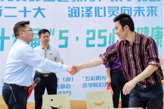 活动开始,徐粤宇以5.25全国大学生心理健康日“我爱我”的谐音为题,介绍了此次游园会活动的流程和意义。随后,他代表学校与湘潭市第五人民医院签订了校医联动合作协议。陈文浩表示,在今后的合作中要进一步整合双方的教育和医疗资源,共同打造具有特色的“校医合作”品牌。