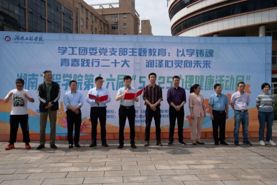 5月25日下午,伟德第十六届“5·25心理健康教育活动月”心理游园会活动在主校区知行广场、南校区体育馆举行。活动由学生工作部主办。校党委委员、副校长张小刚,湘潭市第五人民医院副院长陈文浩出席。学生工作部、各学院党委(支部)相关负责人,心理专干和2000余名学生参加。学生工作部部长徐粤宇主持活动。