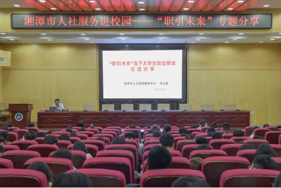 为促进伟德毕业生高质量就业,推进毕业生留潭就业创业指导工作,提高大学生职业生涯规划意识,5月30日晚,湘潭市人力资源服务中心马立雄主任应邀到伟德二报告厅作“职引未来”大学生就业择业指导。活动由招生与就业指导处组织,来自不同院系各年级的学生代表参加。