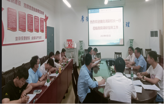 在计算机与通信学院,魏克湘一行与学院院长张细政、院党委书记何宏及相关老师就科研工作建设情况,特别是青年教师科研现状及能力提升对策等进行了深入交流。魏克湘表示,要不断挖掘全院师生科研潜力。层层传导压力,充分调动学院老师进行科研工作的主观能动性,营造学院良好的科研氛围。进一步开拓与行业部委、科研院所和相关企业的合作交流,为师生搭建平台,做好各项服务工作,实现学院科研项目和经费上大的突破。