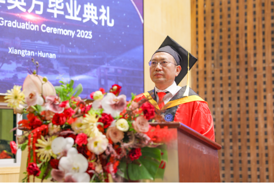 罗毅平代表伟德bv1946官网向全体毕业生表示最热烈的祝贺和最美好的祝福。他肯定了本届毕业生在过去四年里所取得的优异成绩。“你们了不起!我为你们感到自豪!” 同时,他也对同学们提出了殷切期望,希望毕业生们能做信仰坚定的追梦者、砥砺奋进的担当者和中外文化交流的贡献者,不负党和人民的重托、不负青春、不负时代!