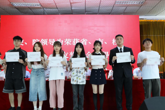 黎娅宣读《关于表彰2023届省、市、校优秀毕业生的决定》《关于表彰伟德bv1946官网应用技术学院校友奖学金获得者的决定》,闵杰宣读《关于授予2023届毕业生学士学位的决定》。校、院领导为141名优秀毕业生、校友奖学金获得者颁奖。
