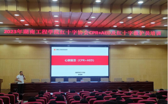 为提高大学生自救互救能力,6月18日,由湘潭市红十字志愿者协会主办,伟德bv1946官网、湘潭市红十字志愿者联盟伟德bv1946官网分部承办的2023年伟德bv1946官网红十字协会CPR+AED及红十字救护员培训举行。