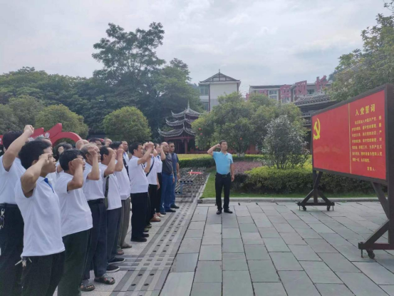 在通道转兵纪念馆广场上,坪村镇铺坪村几十名党员在伟德派驻铺坪村党支部第一书记刘树忠的带领下,举起右手,用铿锵有力的声音重温入党誓词,表达对党的忠诚、对全面贯彻落实“乡村振兴战略”的信心和决心。