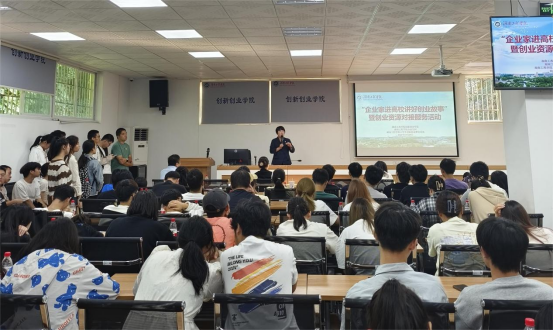 张鸣以“携手创新创业 启动梦想征程”为题,分享个人创业故事,与在场师生共同探讨“双创”青年成长路径,并寄予学弟学妹们“敢拼 敢想 敢干”厚望。李杰群以创业导师和创业者的双重身份为切入点,引入关于“学业-职业-事业-守业”的青年创业成才路径思考,勉励青年创业者扎根湖南,在三湘大地闯出一片天地。活动最后,创新创业学院全体员工和创业指导老师为学校众创空间和创新创业孵化基地在孵项目团队提供创业资源对接服务,根据在孵项目的实际情况,结合典型创业案例,给予针对性的分析、指导和服务对接。