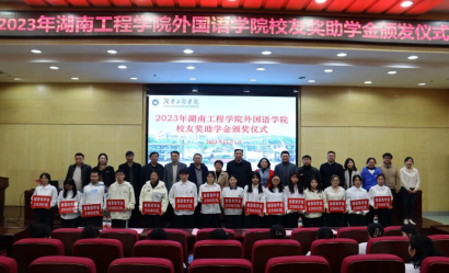 温暖同行显真情,助学筑梦新时代。12月1日下午16:00,外国语学院“越景助学金”“梓萌助学金”“桑尼森迪-洋塑助学金”“腾羽创新创业奖学金”颁发仪式在二报告厅举行。“让我们用自己的心声,感恩自己的校友”,本次仪式在获奖受助学生的诗歌朗诵与歌曲演唱中拉开帷幕,拳拳爱心点燃希望之火。