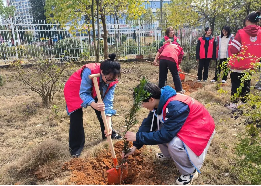 春回大地万物苏,植树添绿正当时。3月12日,爱心社志愿者们在主校区开展义务植树活动。在和煦春风的吹拂下,一棵棵象征着希望的小树苗在湖工校园里稳稳扎根,志愿者们把青春、活力和汗水洒在孕育绿色生命的土壤上。