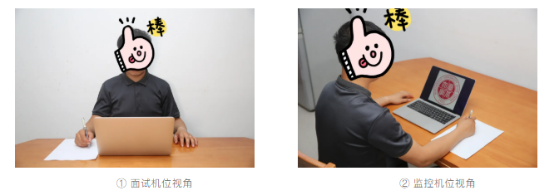 “双机位”分为面试机位(正前方)和监控机位(侧后方45°)。
