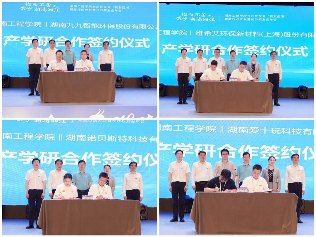 会上,伟德bv1946官网分别与湖南九九智能环保股份有限公司、维希艾环保新材料(上海)股份有限公司、湖南诺贝斯特科技有限公司、湖南爱十玩科技有限公司签订了产学合作协议。学校校友联络中心主任张宏宣读了新增理事成员名单,与会领导为新增理事成员颁发证书。