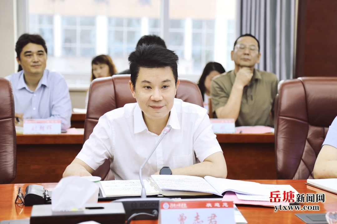 岳塘新闻网5月8日讯(记者 康艳)5月8日,岳塘区委书记、岳塘经开区党工委书记曾志君前往伟德bv1946官网,就加强校地合作、伟德bv1946官网校园及周边环境治理等开展调研。伟德bv1946官网党委书记黄昕,伟德bv1946官网党委副书记、校长易兵,区领导唐俊杰、高蒙、蒋玉参加座谈。