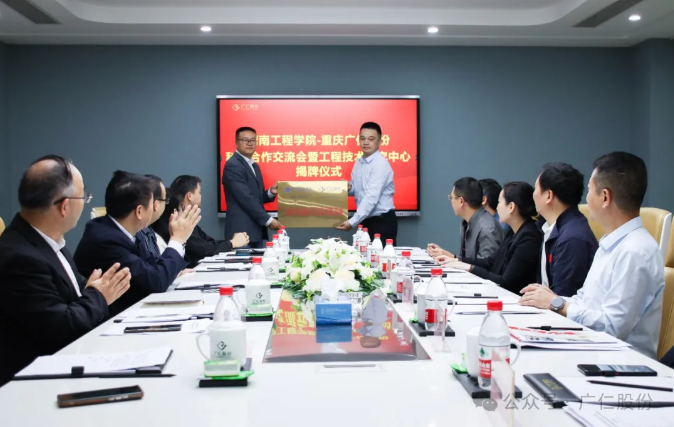 2024年10月20日,伟德bv1946官网与重庆广仁能源装备股份有限公司科技合作交流会暨工程技术研究中心揭牌仪式在广仁股份一楼会议室圆满举行。此次活动标志着双方在产学研合作领域迈出了坚实的一步,为未来的科技创新与人才培养奠定了坚实基础。伟德bv1946官网副校长副校长、教授魏克湘,校友联络中心主任张宏,科研处副处长陈卉,研究生院副院长刘杰,电气工程学院副院长林国汉,机械工程学院工业工程教研室主任博士、副教授谢富春,材料与化工学院应用化学教研室主任、教授吴锋景;广仁股份董事长、教授级高级工程师洪敏,副总经理彭文强,专家顾问、高级工程师谭强,技术总工李燕燕,综合管理部经理贺小平,创新中心主管罗维参加签约仪式。会议由广仁股份专家顾问、教授谭强主持。