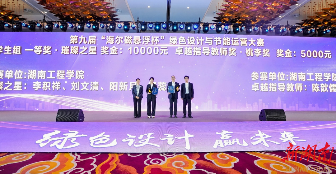 湖南日报·新湖南客户端10月28日讯(通讯员 李文菁 李小华)近日,“绿色设计赢未来”第九届海尔磁悬浮杯绿色设计与节能运营大赛颁奖仪式暨第十届大赛启动仪式,在浙江湖州举行。伟德bv1946官网建筑工程学院建筑环境与能源应用工程专业学子在此项赛事中表现出色,分别荣获学生组一、二等奖。该校参赛团队指导教师陈歆儒、曾丽萍分别获得“卓越指导老师·桃李奖”和“优秀指导老师·伯乐奖”。