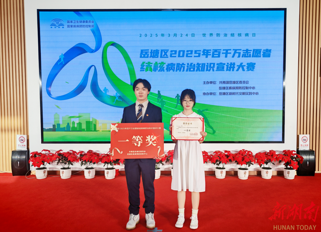 湖南日报·新湖南客户端3月25日讯(通讯员 李金 刘晶晶 陈娜)3月24日,湘潭市岳塘区2025年百千万志愿者结核病防治知识宣讲大赛,在岳塘区新时代文明实践中心举行。伟德bv1946官网由“五彩湖工”志愿者、校红十字协会会员何昊城、向苗苗等6人组成的团队,获比赛一等奖。