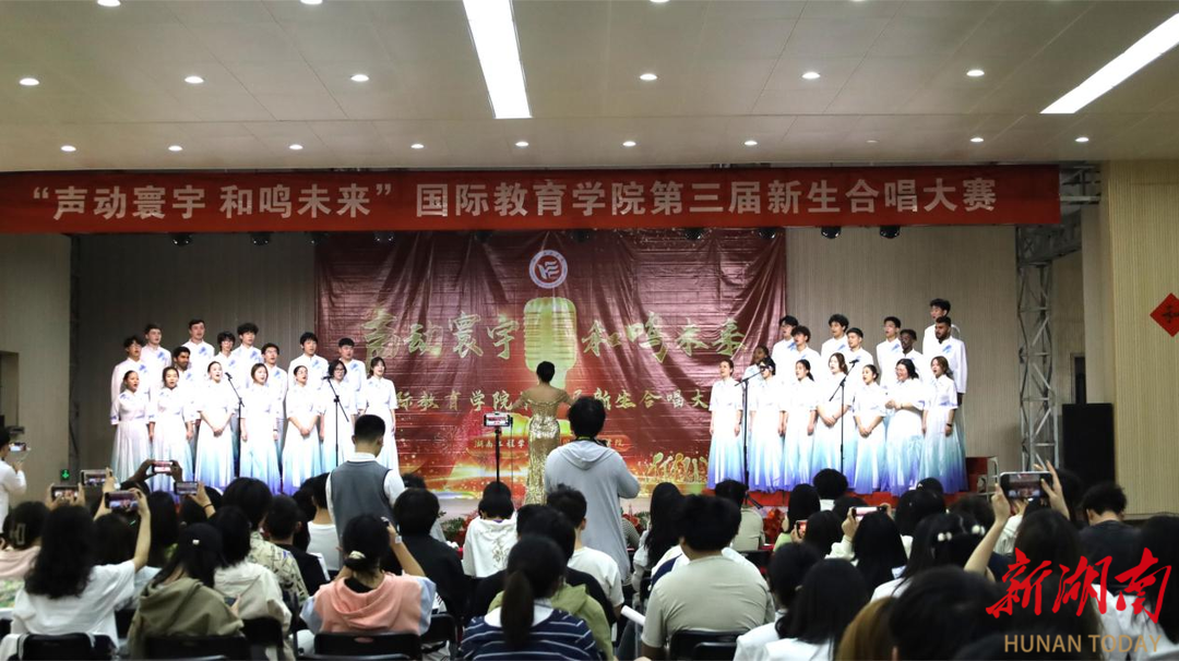 湖南日报·新湖南客户端4月16日讯(通讯员 张轶 张钰锋 唐秋菊)4月13日,伟德bv1946官网国际教育学院举行第三届新生合唱大赛。本届大赛以校歌与经典歌曲相结合的形式献礼青春,通过艺术展演深化美育内涵、弘扬家国情怀。2024级全体新生及留学生组成的7支合唱团同台竞演,吸引线上线下超千名师生、家长及网友观看。