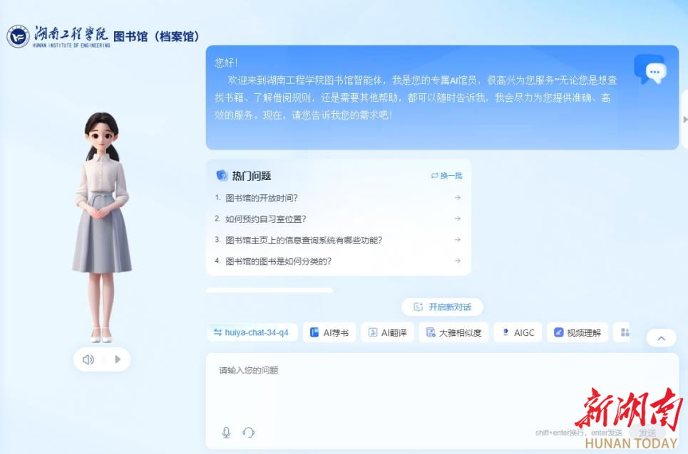 湖南日报·新湖南客户端5月19日讯(通讯员 陈思羽)为更好服务广大师生,提升图书馆智慧水平,近日,伟德bv1946官网图书馆在官网新上线AI馆员服务,并在两个校区图书馆大厅摆放AI交互屏幕。