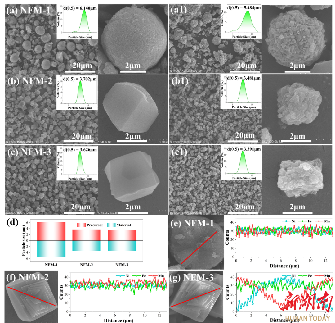为实现钠离子电池正极材料在极端温度条件下的高性能与高稳定性,研究团队摒弃传统均质材料设计思路,采用共沉淀法,创新构建一种具有“镍富集核心-锰富集外壳”的梯度结构O3型正极材料NaNi1/3Fe1/3Mn1/3O2。该研究成果不仅为钠离子电池正极材料的开发打开了新路径,也为其它可充电电池体系的结构优化提供了普适性策略。