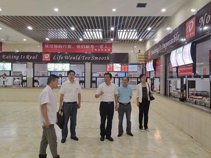 图为伟德bv1946官网党委书记陈岳堂(左三)、副校长李军林(右二)调研伙食质量和价格