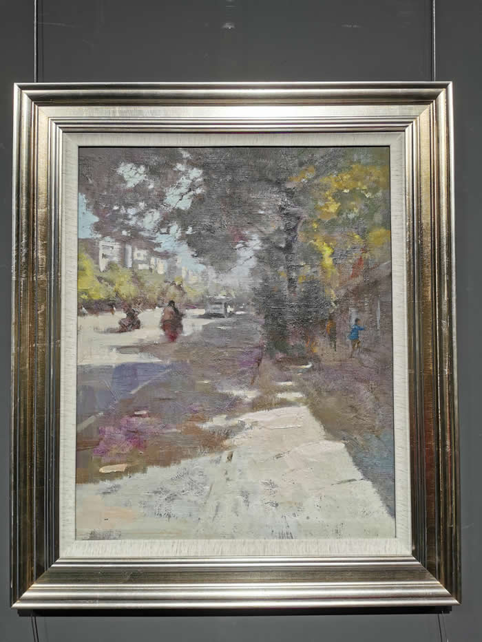 在二楼的中格美术馆,展出的作品以新颖的创意、精巧的构思,饱含情感的笔墨,表达了对祖国、对湖工的热爱之情。一等奖摄影作品《劳动音符》(作者:凌毅)通过剪影处理构成,形态各异的劳动者们站在施工搭建的一层层基架上,如同在五线谱上跳动的各色音符,在各自的施工岗位上谱写华章。一等奖摄影作品《窗外 对话》(作者:贾珍)以黑白色的视角展示了苏州博物馆一隅,画外有画,窗外有窗,形成无限延伸的灵感,两个人自然流露的对话动作,更像两个时代、两个空间的交流,予人无限遐想。